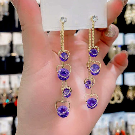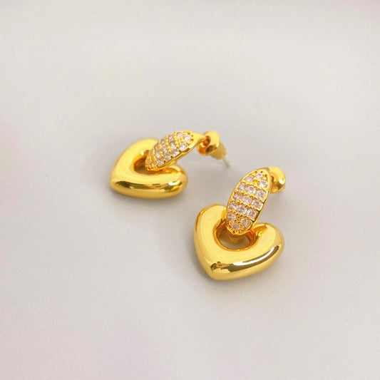 14K Gold-Plated Diamond Heart Tassel Earrings