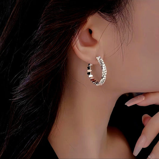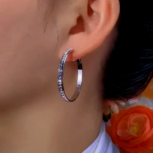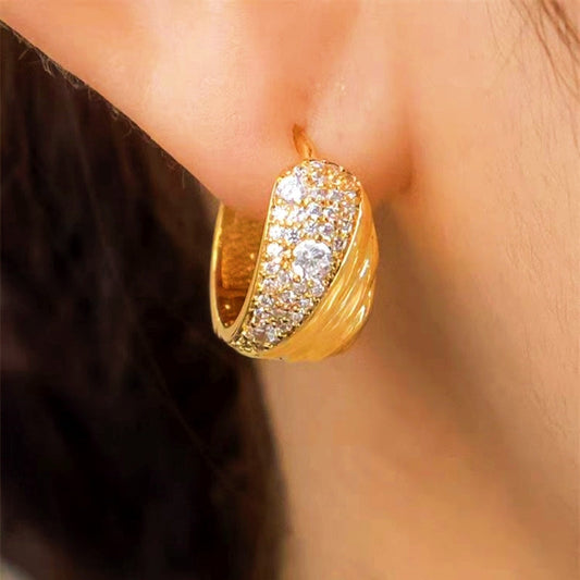 14k Gold-Plated Diamond Hollow Hoop Earrings