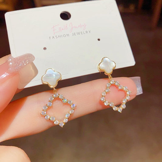 14K Gold-plated Diamond Hollow Four-Leaf Flower Earrings