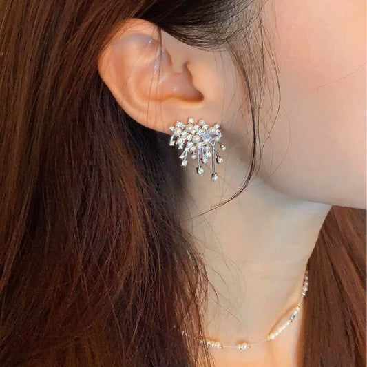 14K Gold Plated Pearl Four-Leaf Flower Front And Back Earrings