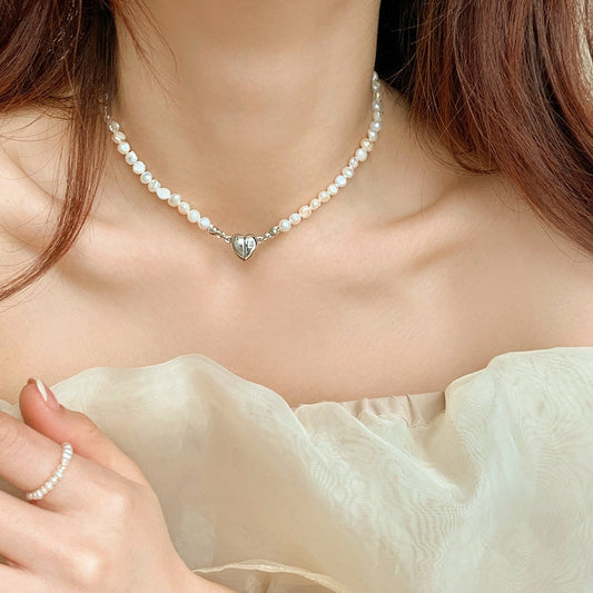 14K Gold Plated Pearl Magnetic Heart Necklaces
