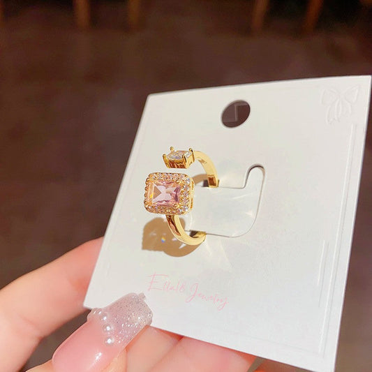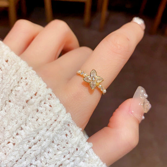 14K Gold Plated Rotatable Adjustable Zircon Four-Leaf Flower Pearl Rings
