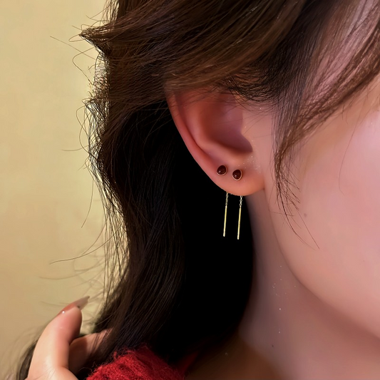 14K Gold Plated Red Crystal Tassel Threader Earrings