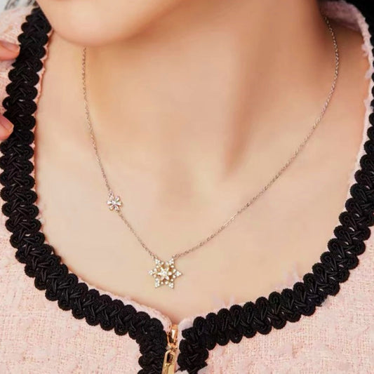 14K Gold Plated Rotating Snowflake ice flower necklace