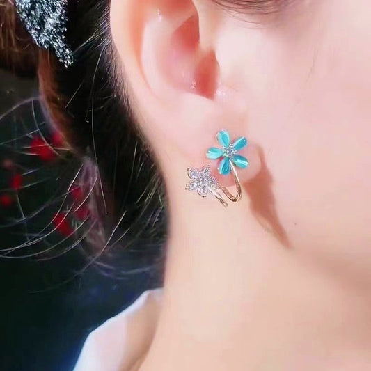 14K Gold Plated Red Rose Crystal Leaf Earrings