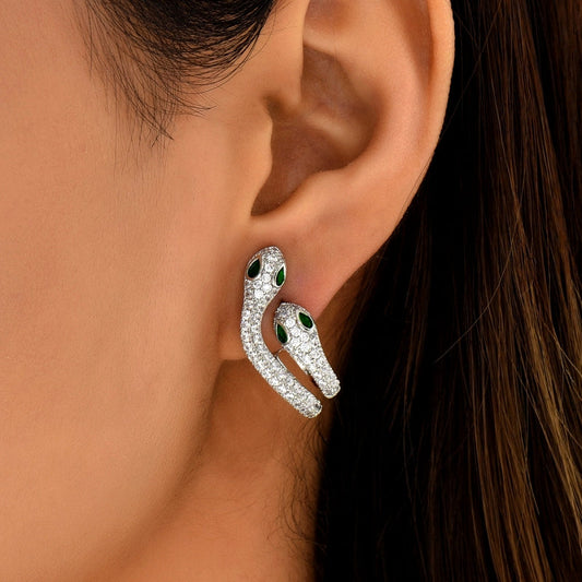 14K Gold-Plated Diamond Snake Earrings
