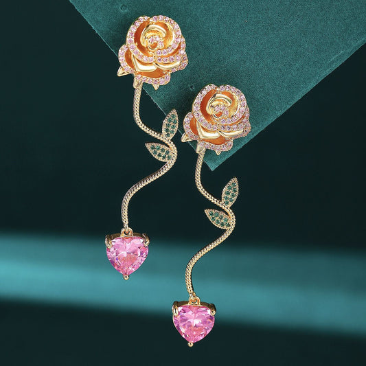 14k Gold-plated Diamond Rose Earrings