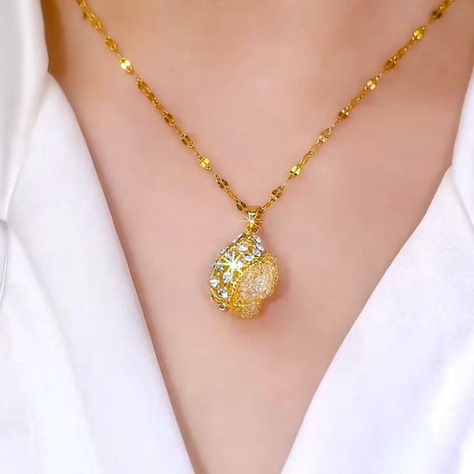 14K Gold-Plated Diamond-Studded Brown Leaf Necklace
