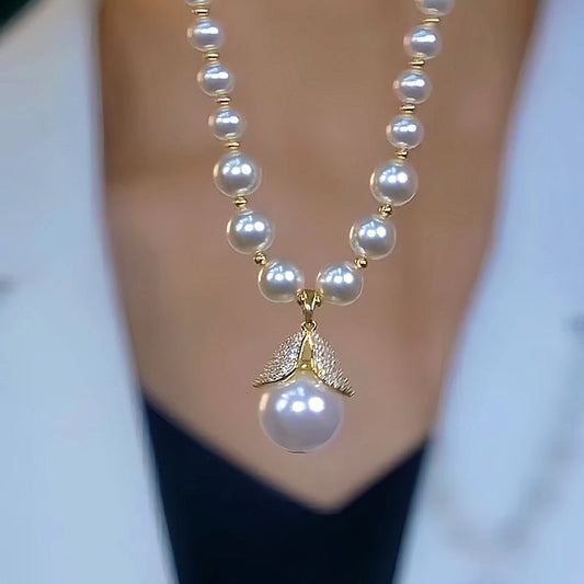 14K Gold-Plated Diamond-Studded Flower Pearl Earrings
