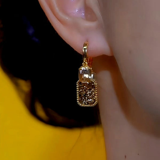 14K Gold-plated Diamond-Studded Brown Crystal Square Earrings