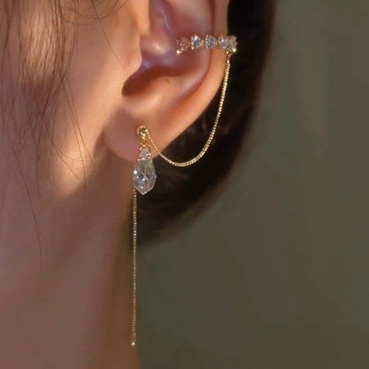 14K Gold-plated Diamond-Encrusted Ear Cuffs(1 Pair)