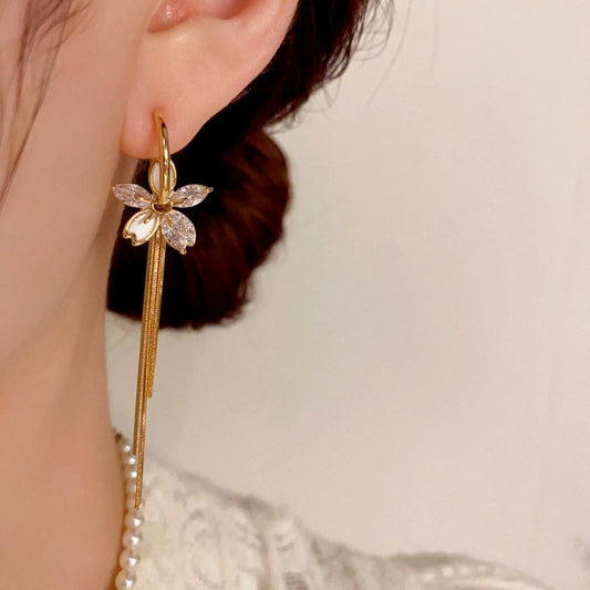 14K Gold-Plated Diamond-Studded petal Tassel Earrings