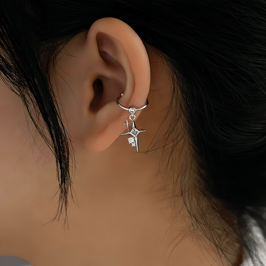 14K Gold-Plated Double Cross Star Diamond Ear Clips