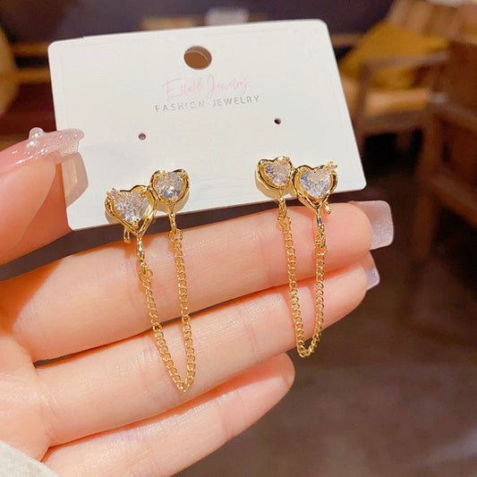 14K Gold-plated Double Heart Chain Earrings