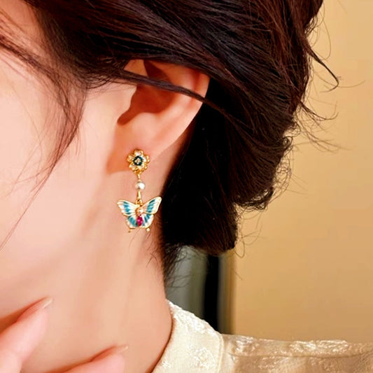 14K Gold-plated Elegant Butterfly Pendant Earrings