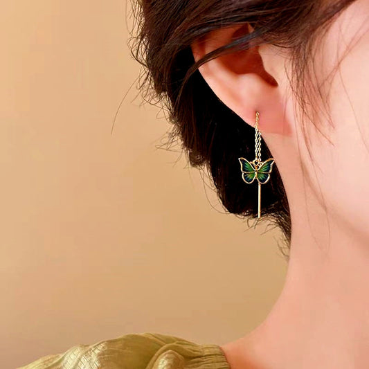 14K Gold-Plated Elegant Butterfly Threader Earrings