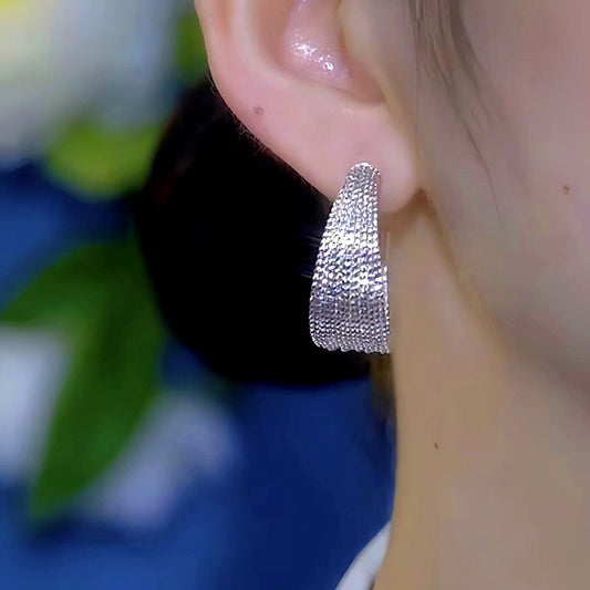14K Gold-Plated Elegant C-Shaped Diamond Earrings