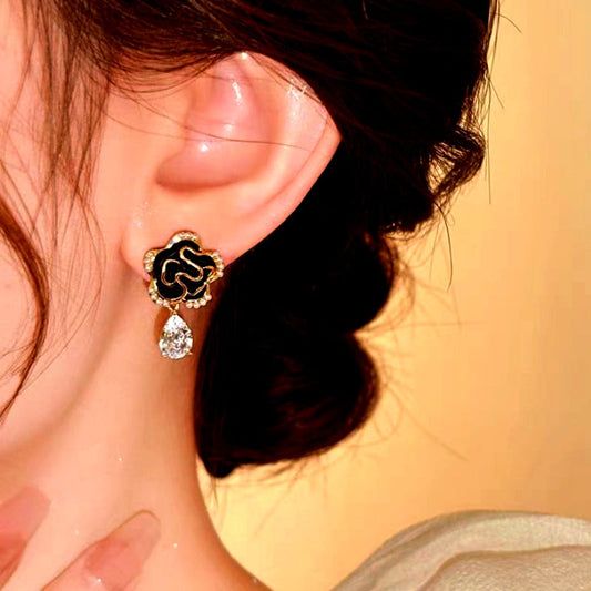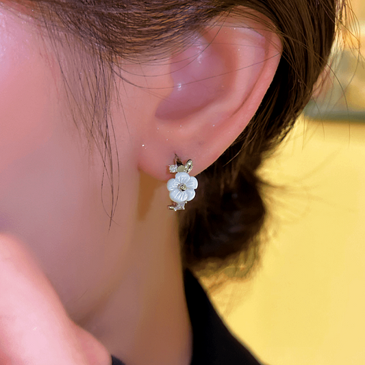 14K Gold-plated Elegant Camellia Diamond Small Hoop Earrings