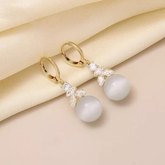14K Gold-Plated Elegant Cat's Eye Drop-Shaped Earrings