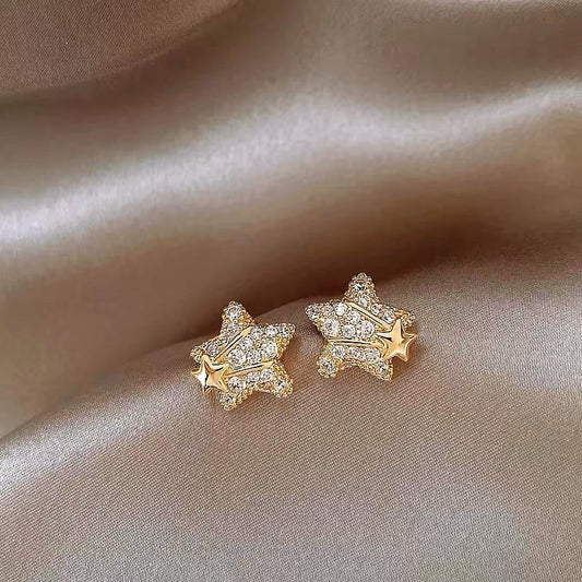 14K Gold-Plated Elegant Diamond Star Earrings