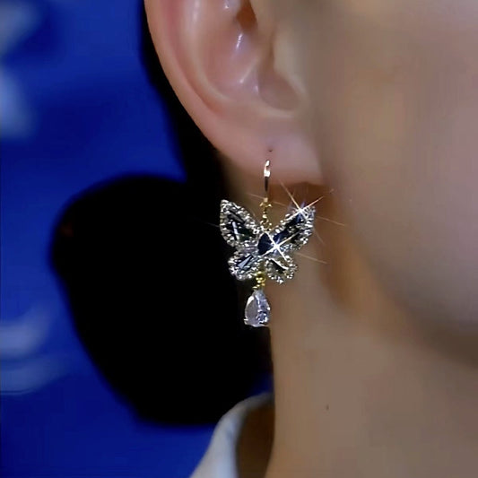 14K Gold-Plated Elegant Diamond Zircon Butterfly Earrings