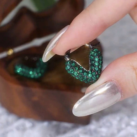 14K Gold-Plated Elegant Diamond-Filled Dark Green Heart Earrings