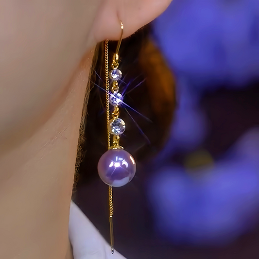 14K Gold-Plated Elegant Diamond-Studded Purple Pearl Threader Earrings