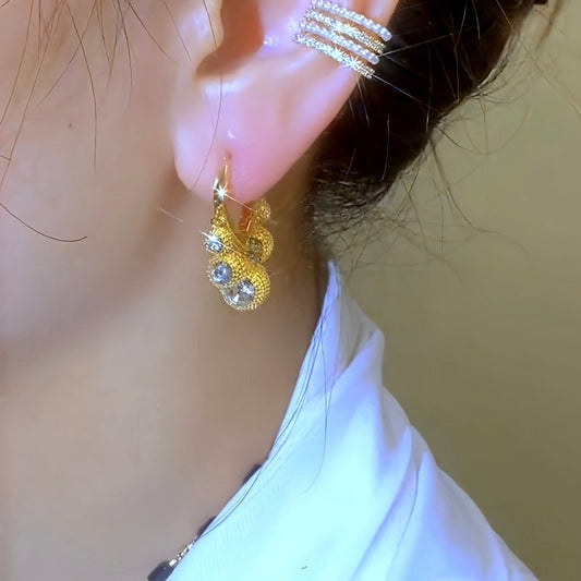 14K Gold-Plated Elegant Dragon-Shaped Diamond-Studded Pearl Earrings