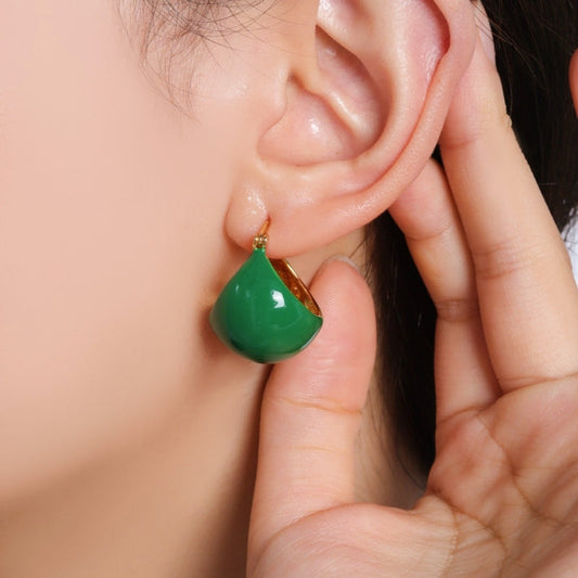 14K Gold-plated Elegant Double-Sided Enamel Heart Earrings