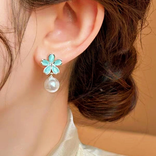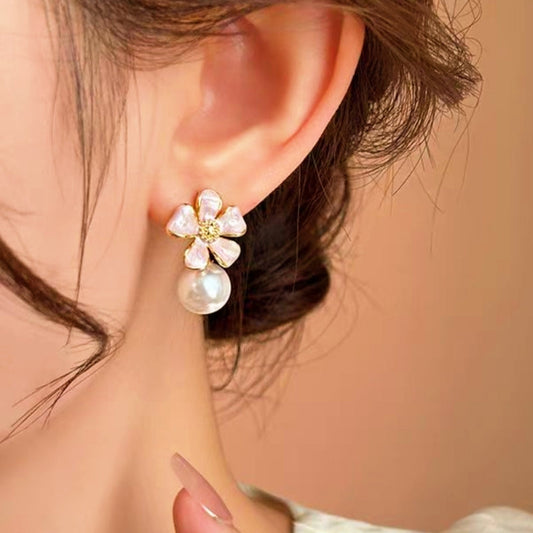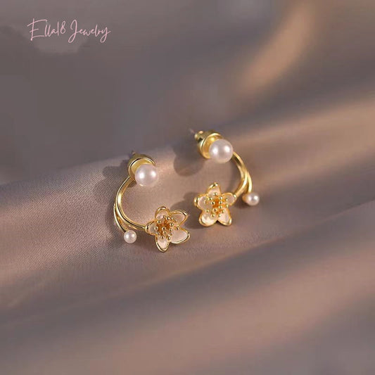 14K Gold-Plated Elegant Flower Pearl Earrings