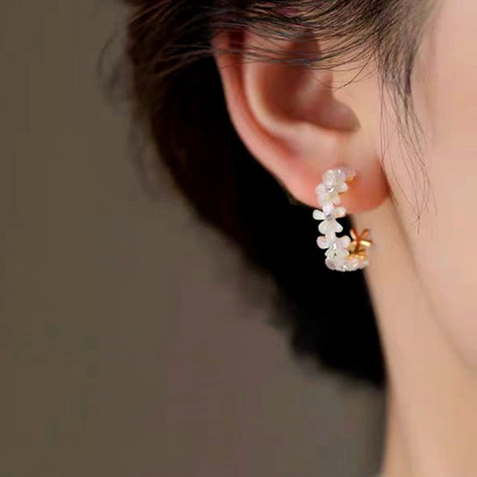 14K Gold-Plated Elegant Flower C-Shaped Earrings