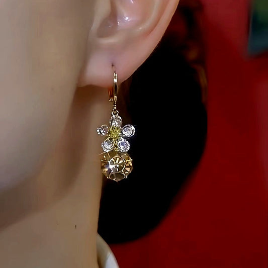 14K Gold-Plated Elegant Flower Diamond Ball Earrings