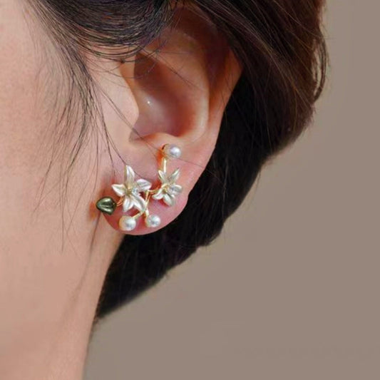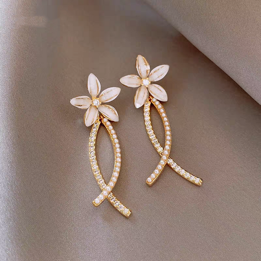 14K Gold-Plated Elegant Flower Pearl Crystal Earrings