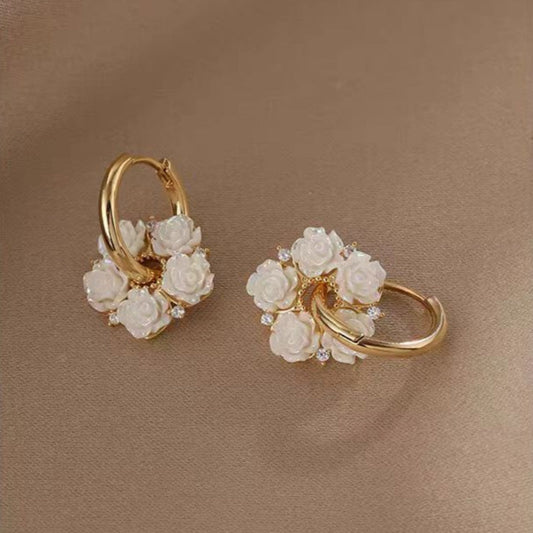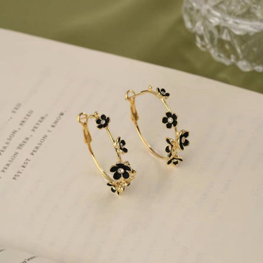 14K Gold-Plated Elegant Flower Hoop Earrings
