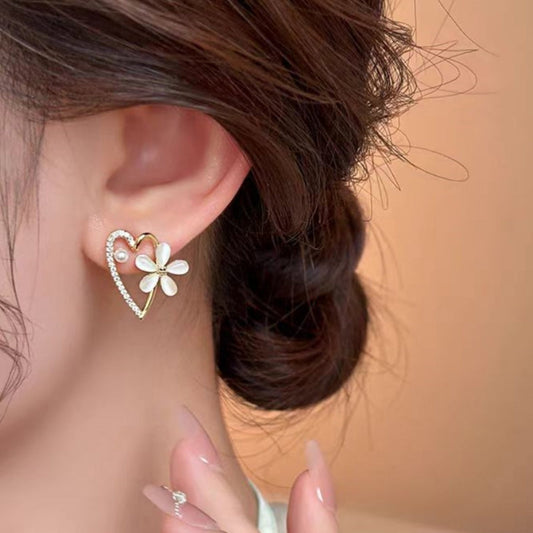 14K Gold-Plated Elegant Heart-Design Flower Stud Earrings