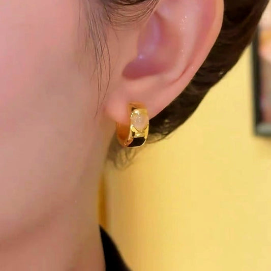 14K Gold-Plated Elegant Heart-Design Mother-Of-Pearl Hoop Earrings