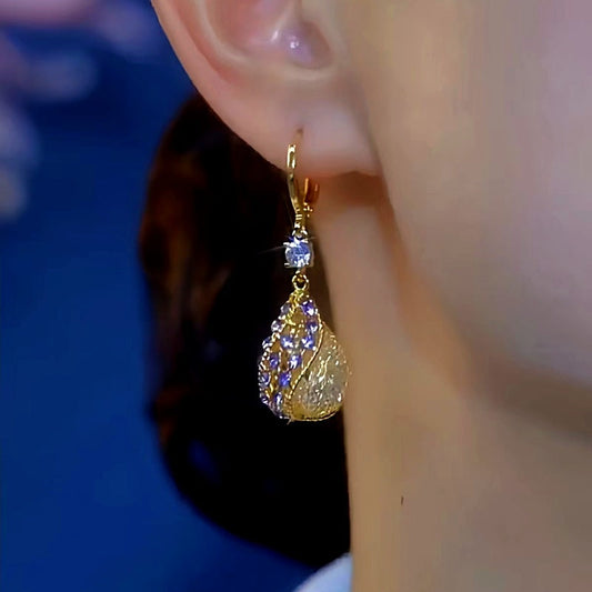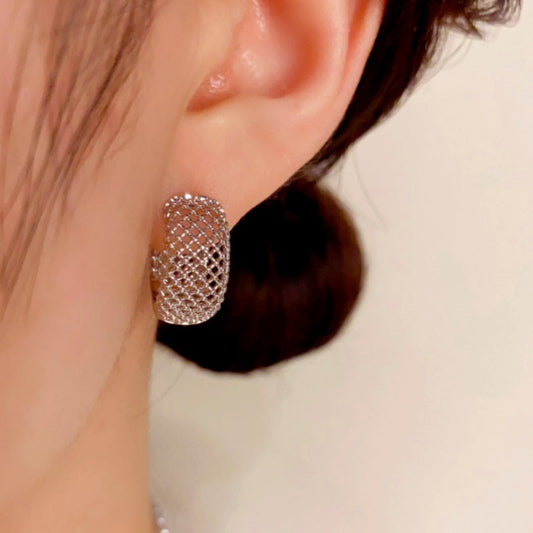 14K Gold-Plated Elegant Hollow Mesh Crystal Earrings