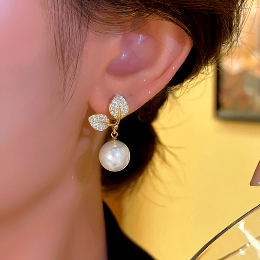 14K Gold-Plated Elegant Leaf Pearl Earrings