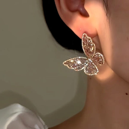 14K Gold-plated Elegant Hollow Zircon Butterfly Earrings