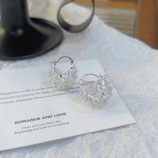 14K Gold-plated Elegant Ice-Transparent Heart Crown Earrings