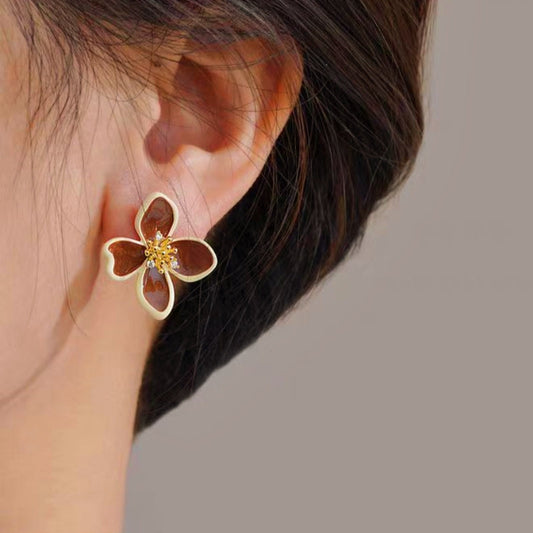 14K Gold-Plated Elegant Maillard Color Flower Stud Earrings