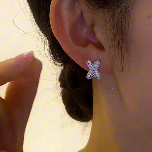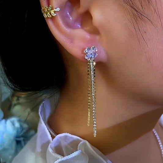 14K Gold-Plated Elegant Long Zircon Four-Leaf Flower Tassel Earrings