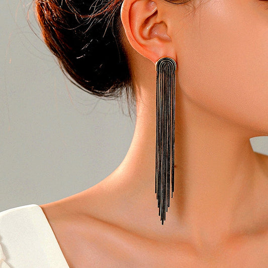 14K Gold-Plated Elegant Long Chain Tassel Earrings