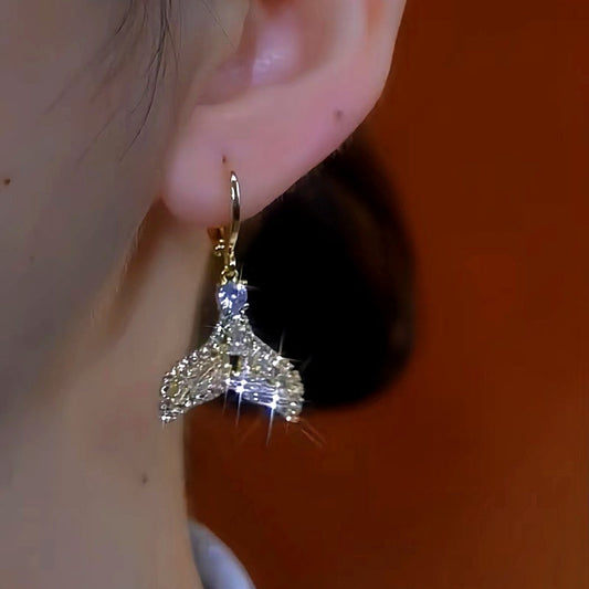 14K Gold-Plated Elegant Light Blue Crystal Leaf Earrings