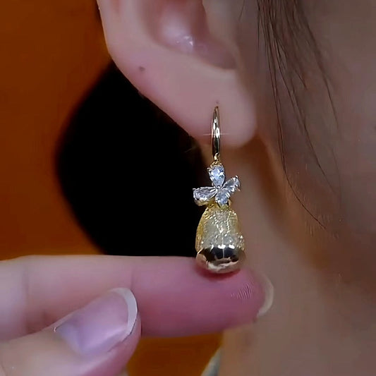 14K Gold-Plated Elegant Oil-Drop Diamond Earrings