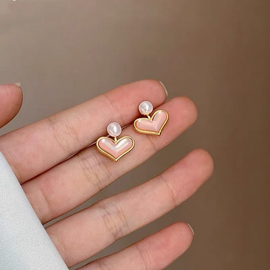 14K Gold-Plated Elegant Mother-Of-Pearl Heart Earrings