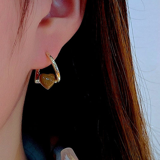 14K Gold-plated Elegant Oil-Drop Brown Heart Earrings