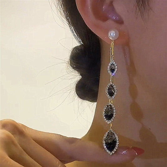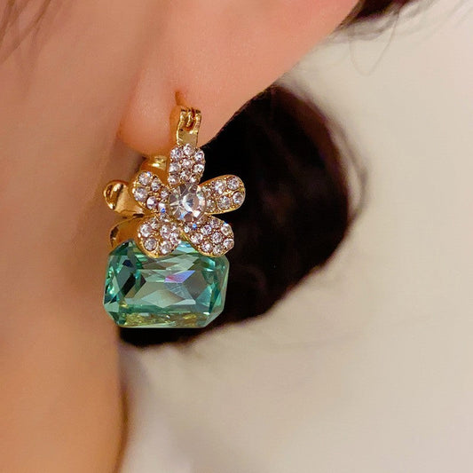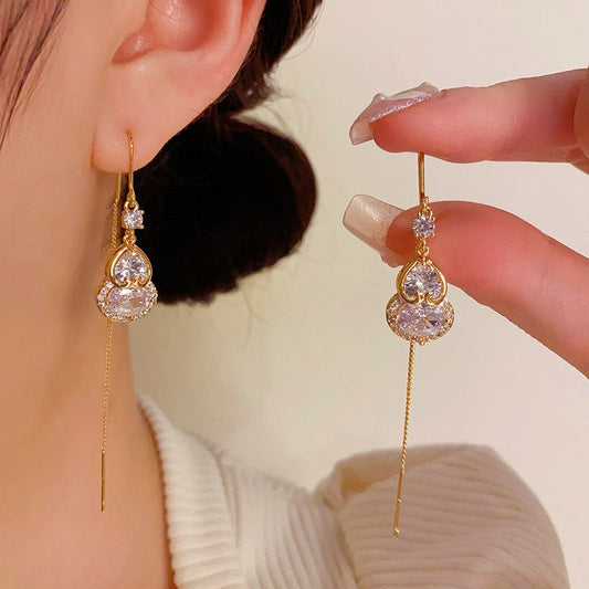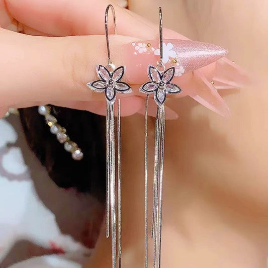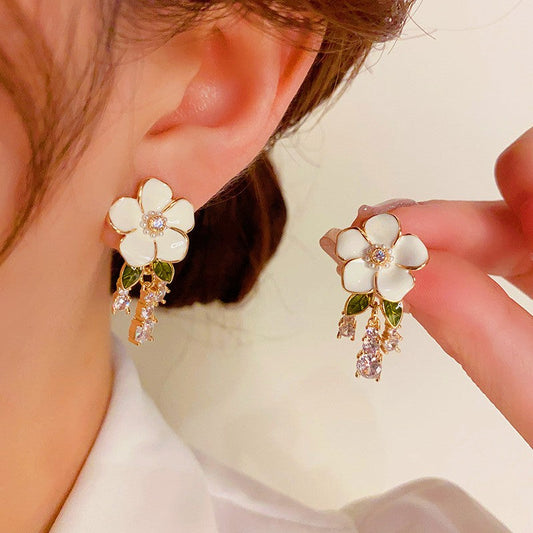 14K Gold Plated Zircon Flower Bead Tassel Earrings