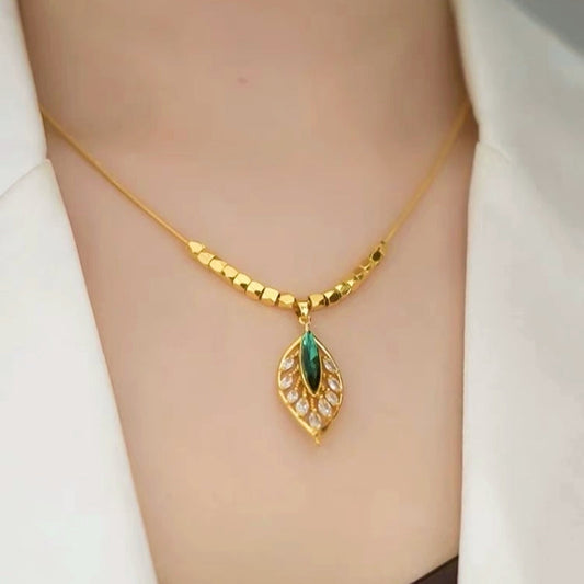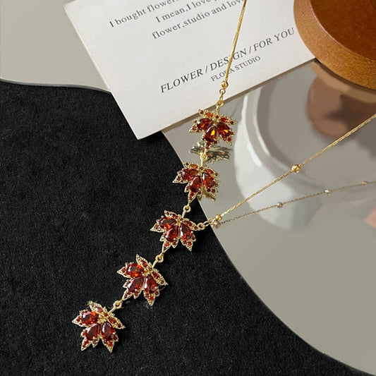 14K Gold Plated Zircon Crystal Red Maple Leaf Necklaces