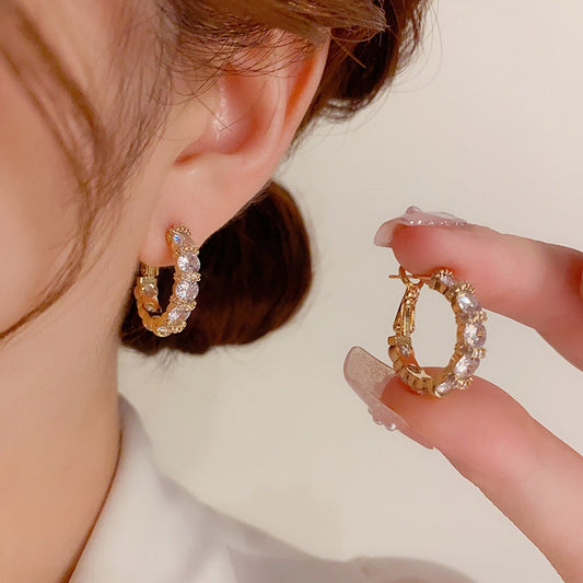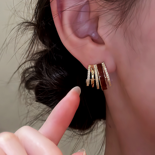 14K Gold Plated Zircon Drip Glaze Multi-Layer C-Shaped Earrings